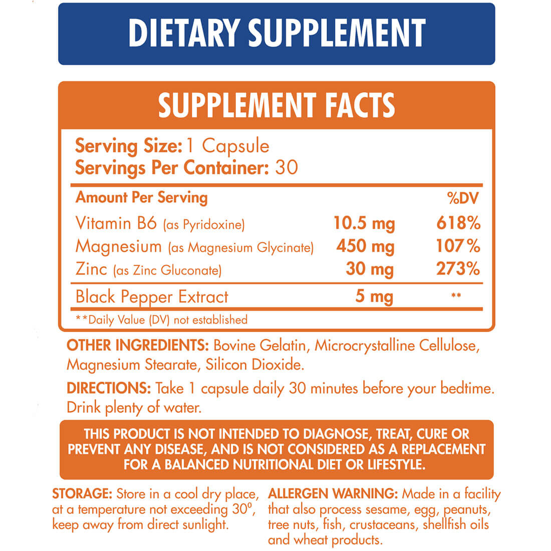 | Magnesium (as Magnesium Glycinate) | 450 mg | 107% |